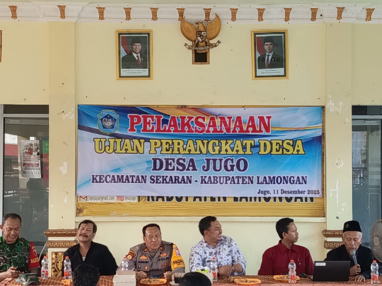 Lamongan, 11 Desember 2025 – Forkopimcam turut hadir dalam kegiatan ujian penjaringan perangkat Desa Jugo, Kecamatan Sekaran, yang dilaksanakan pada hari Kamis, 11 Desember 2025, mulai pukul 08.00 WIB hingga selesai di Balai Desa Jugo.